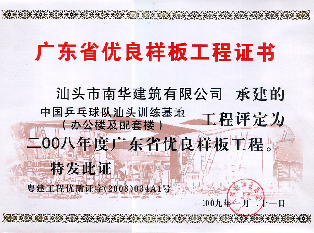 工程樣板證書(shū)