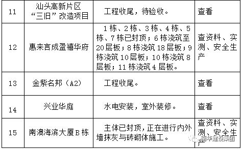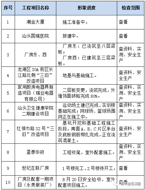 根據現階段工程項目形象進度,本次季度檢查對各階段項目工程檢查如下: