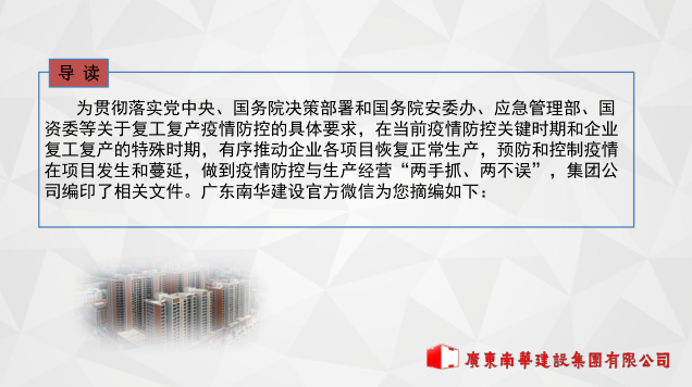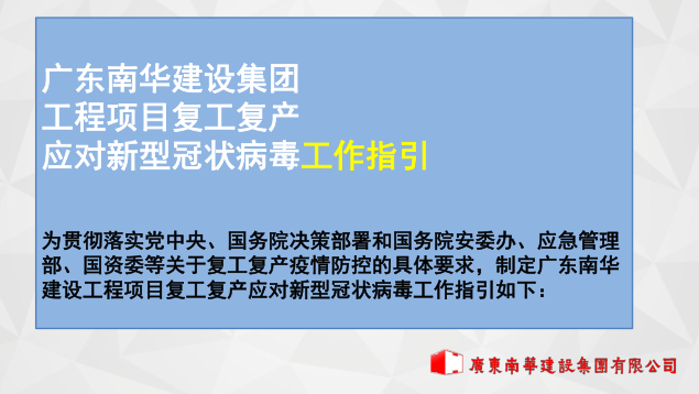 廣東南華建設(shè)集團(tuán)有限公司復(fù)工復(fù)產(chǎn)應(yīng)對(duì)新型冠狀病毒工作指引