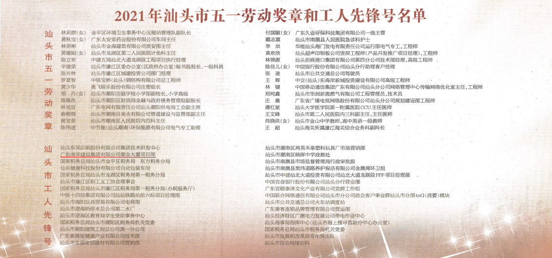 “五一”國際勞動節(jié)來臨之際,4月30日下午,市委市政府在市委會議中心大會堂召開汕頭市慶祝“五一”國際勞動節(jié)大會。南華建設(shè)集團“潮金大廈項目部”榮獲汕頭市 “工人先鋒號”稱號!
