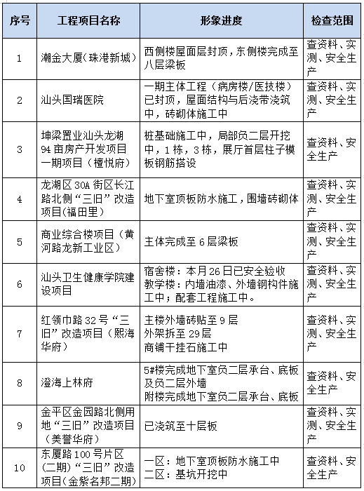 以下15個(gè)項(xiàng)目工程接受本次檢查。
