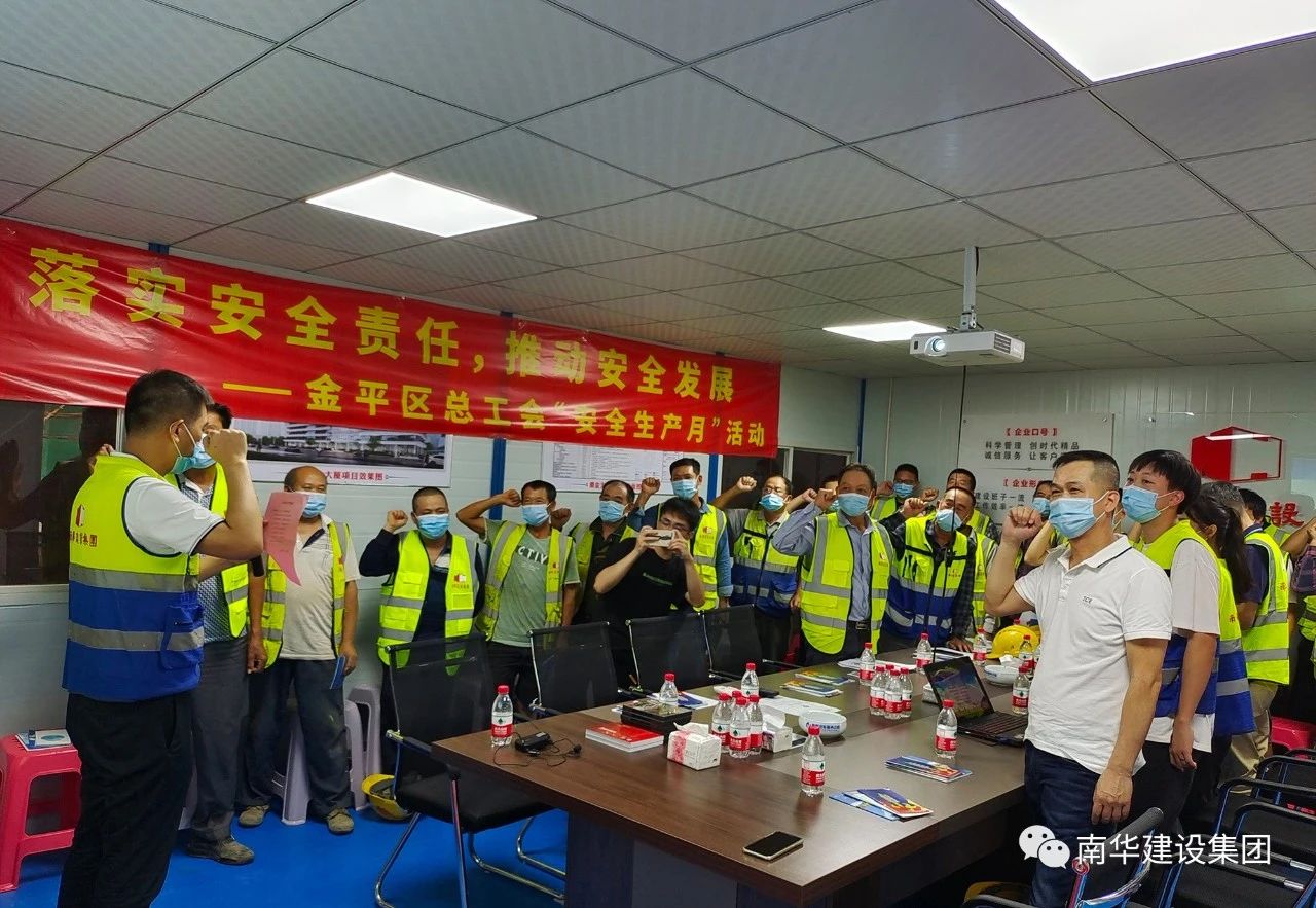 2021年6月是第20個(gè)全國“安全生產(chǎn)月”,集團(tuán)公司深入學(xué)習(xí)貫徹習(xí)近平總書記關(guān)于安全生產(chǎn)重要論述,貫徹落實(shí)黨中央、國務(wù)院關(guān)于安全生產(chǎn)重大決策部署,樹牢安全發(fā)展理念,強(qiáng)化全員安全生產(chǎn)宣傳教育培訓(xùn)工作,增強(qiáng)安全生產(chǎn)意識(shí),提升安全文明素質(zhì),堅(jiān)決防范安全生產(chǎn)事故發(fā)生。6月16日,金平區(qū)總工會(huì)以“落實(shí)安全責(zé)任,推動(dòng)安全發(fā)展”為主題,在集團(tuán)公司潮金大廈項(xiàng)目部開展2021年“安全生產(chǎn)月”活動(dòng),區(qū)工會(huì)、集團(tuán)公司工會(huì)及項(xiàng)目部管理人員、工人代表等參加活動(dòng)。
