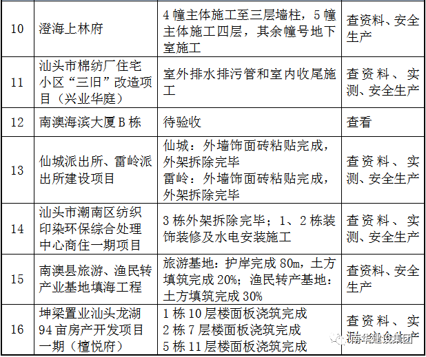 以下16個(gè)項(xiàng)目工程接受本次檢查。