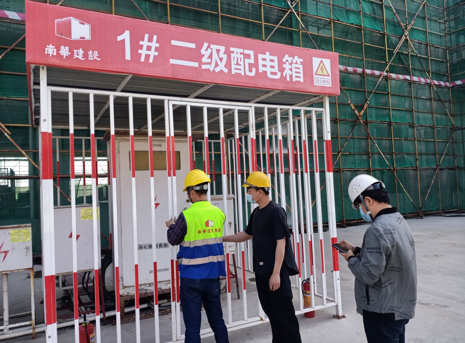 各在建項目臨時用電管理制度完善,各項目負(fù)責(zé)人能夠高度重視施工現(xiàn)場臨時用電安全生產(chǎn)管理工作,能夠嚴(yán)格遵守《建設(shè)工程安全生產(chǎn)管理條例》和《施工現(xiàn)場臨時用電安全技術(shù)規(guī)范》,施工現(xiàn)場臨時用電均能按照規(guī)范要求實(shí)行三級配電、二級漏電保護(hù)系統(tǒng),臨時用電組織設(shè)計能夠履行“編制、審核、批準(zhǔn)”程序并能指導(dǎo)現(xiàn)場臨時用電的組織施工,均配備專業(yè)電氣技術(shù)工作人員,臨時用電管理檔案資料完整。