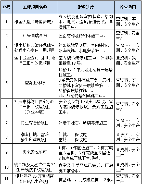 由集團(tuán)公司承建的潮金大廈項目,由廣東省潮劇發(fā)展與改革基金會開發(fā),汕頭市城市建設(shè)監(jiān)理有限公司監(jiān)理,廣東中美建筑設(shè)計院有限公司設(shè)計,本工程自施工開始,公司就確定了“高標(biāo)準(zhǔn)、嚴(yán)要求”的宗旨,在安全文明施工方面,確定了創(chuàng)雙優(yōu)文明工地的計劃,集團(tuán)公司在申報“雙優(yōu)工地”時,嚴(yán)格按照《雙優(yōu)工地評選辦法》進(jìn)行申報,在完成初審后,本月迎來了復(fù)檢工作,在復(fù)檢過程中,安全管理資料以及疫情防控專項資料能夠按要求分類整理歸檔,施工現(xiàn)場安全生產(chǎn)及文明施工均達(dá)到“雙優(yōu)工地”標(biāo)準(zhǔn)。
