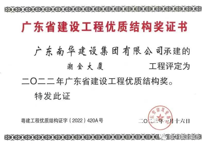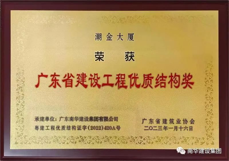 喜訊!潮金大廈榮獲“廣東省建設(shè)工程優(yōu)質(zhì)結(jié)構(gòu)獎”