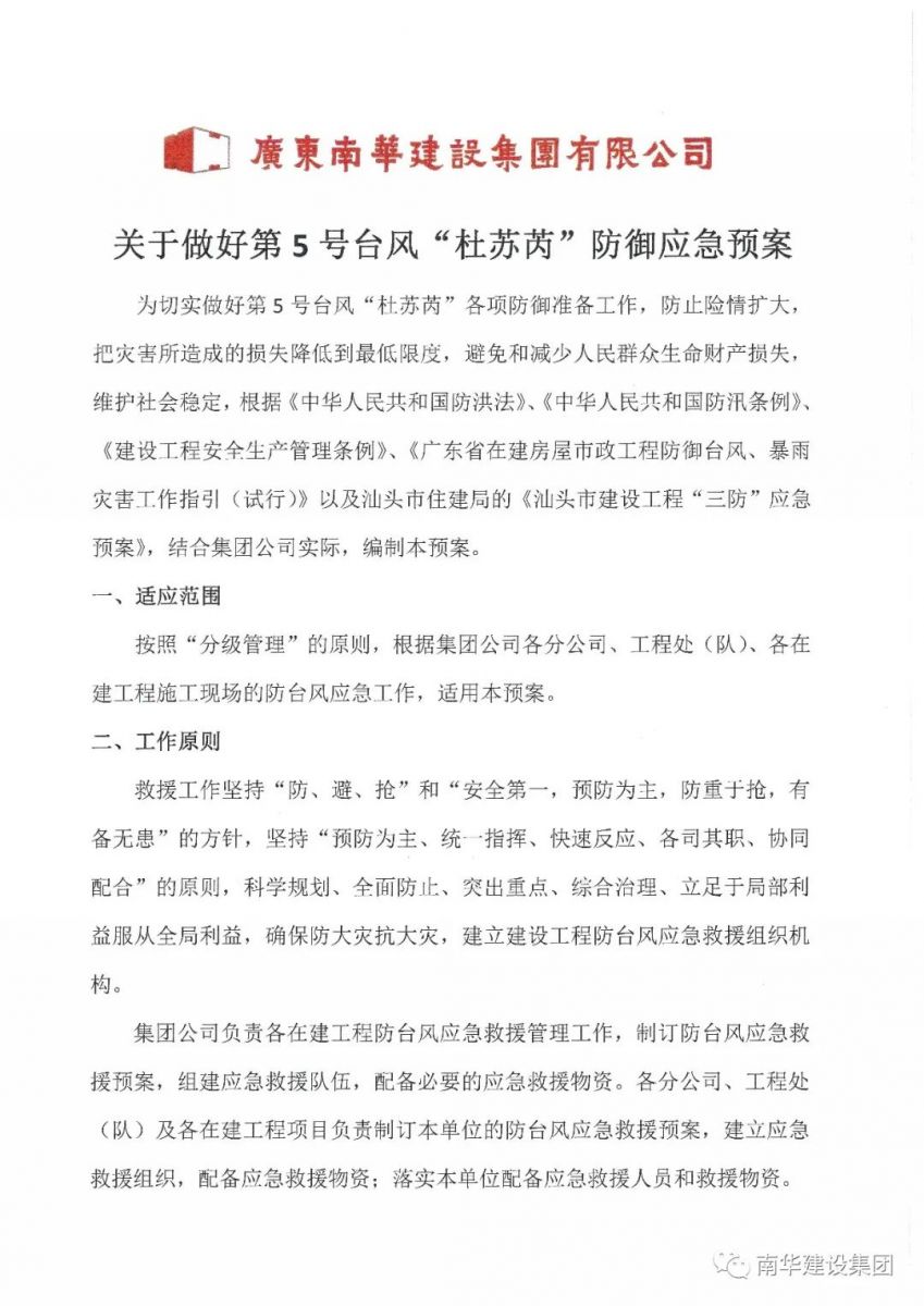 關于做好第5號臺風“杜蘇芮”防御應急預案