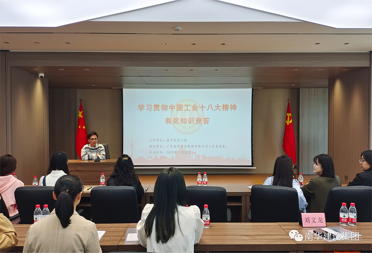 在宣講活動后,還組織了一場由金平區(qū)工會主辦、南華建設(shè)集團協(xié)辦的“學(xué)習中國工會十八大精神”有獎知識競答。競答現(xiàn)場大家踴躍搶答,氣氛熱烈,讓大家在競答中加深對中國工會十八大精神學(xué)習的理解和提升。