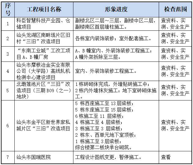 本季度正值于汛期、高溫、強(qiáng)降水及臺風(fēng)高發(fā)階段,要求各在建項(xiàng)目在此階段認(rèn)真做好會商研判、檢測預(yù)警、群防群治等各項(xiàng)工作,嚴(yán)格落實(shí)防臺風(fēng)“六個百分百”的相關(guān)規(guī)定,強(qiáng)化建筑工地防風(fēng)防雨、安全管理,進(jìn)一步提高各項(xiàng)目臺風(fēng)防御工作。針對各項(xiàng)目特點(diǎn)做好重點(diǎn)部位、重點(diǎn)區(qū)域建立風(fēng)險(xiǎn)臺賬、隱患清單,及時(shí)開展排查治理,切實(shí)強(qiáng)化各項(xiàng)目應(yīng)急管理和安全教育工作。集團(tuán)公司本季度重點(diǎn)對在建項(xiàng)目建筑起重機(jī)械、深基坑、高處墜落、預(yù)防坍塌、臨時(shí)施工用電和施工消防安全等工程分別進(jìn)行了專項(xiàng)檢查,重點(diǎn)檢查以下專項(xiàng)工程的落實(shí)情況: