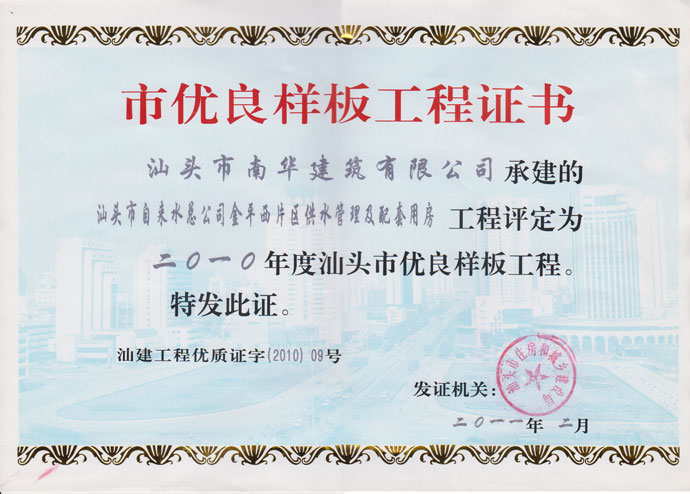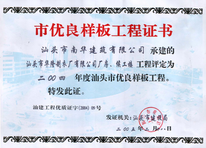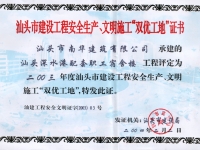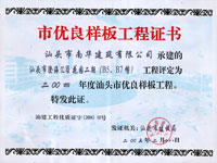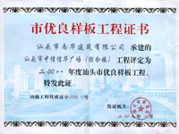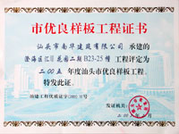 汕頭中心醫(yī)院市雙優(yōu)工地證書