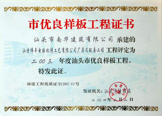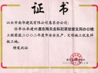 汕頭國地稅辦公樓省雙優(yōu)工地證書